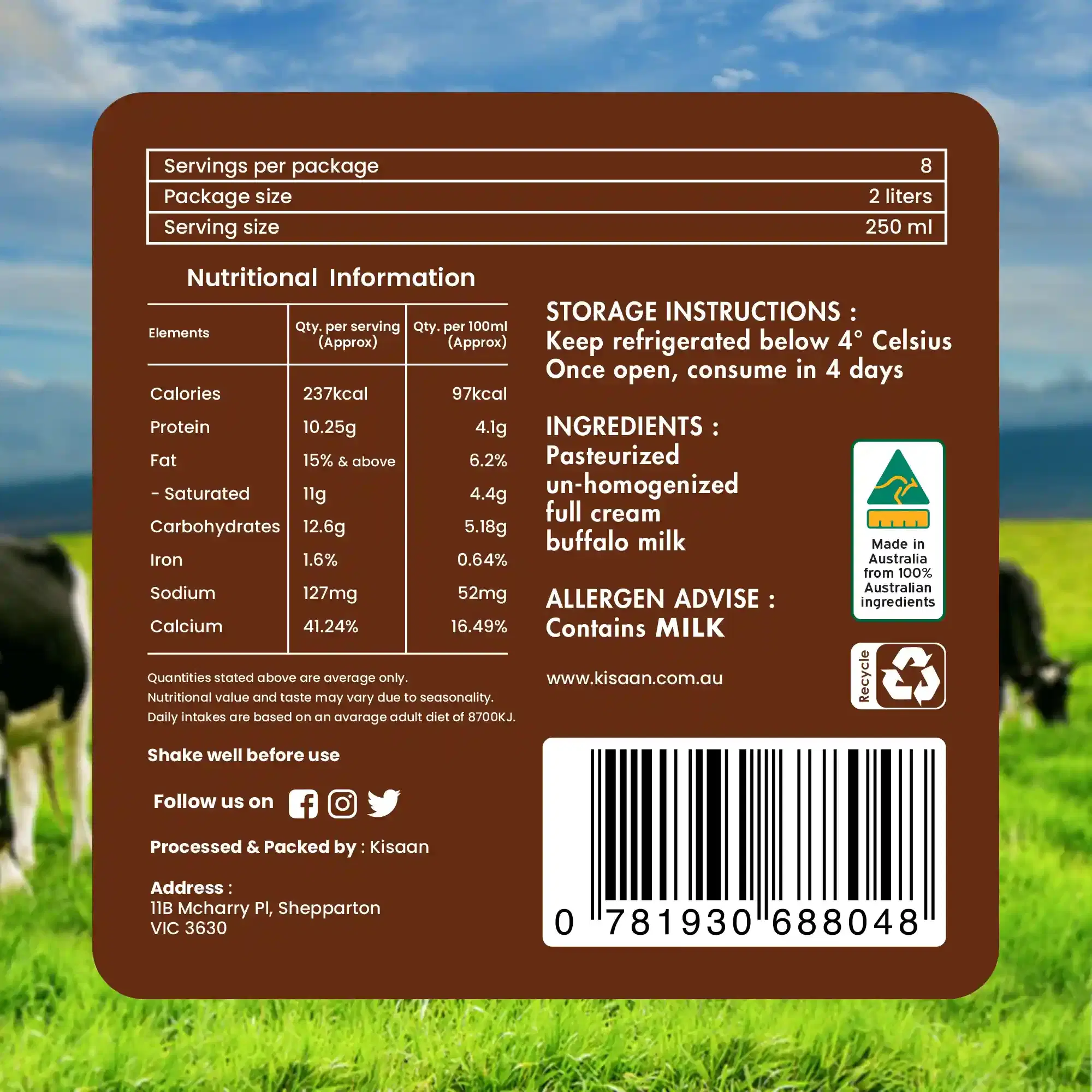 kisaan Full Cream Buffalo Milk – 2L