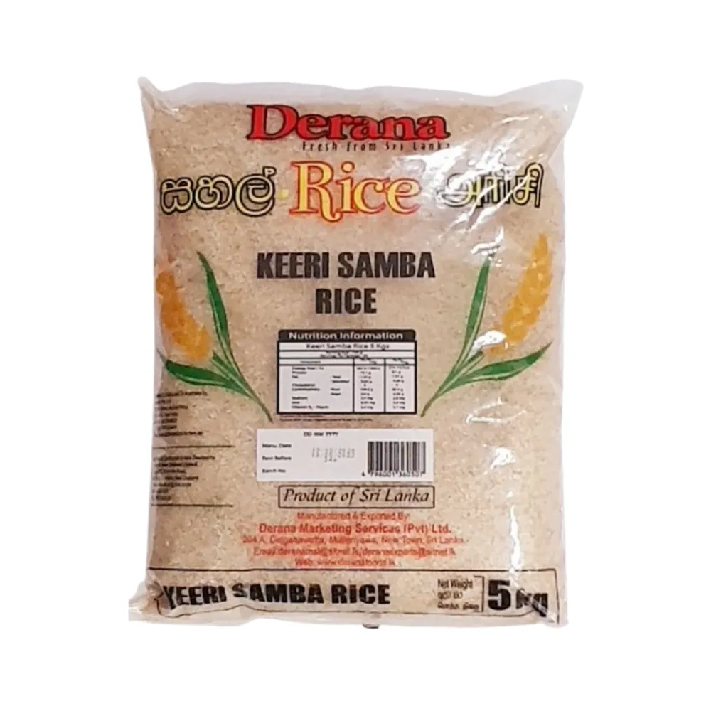 Derana Keeri Samba is a premium variety of short-grain rice known for its fragrant aroma and slightly nutty flavor. Traditionally used in Sri Lankan cuisine, it cooks up soft and fluffy, making it perfect for daily meals, biryanis, and rice-based dishes. Its natural texture and taste bring authentic South Asian flavor to your table.